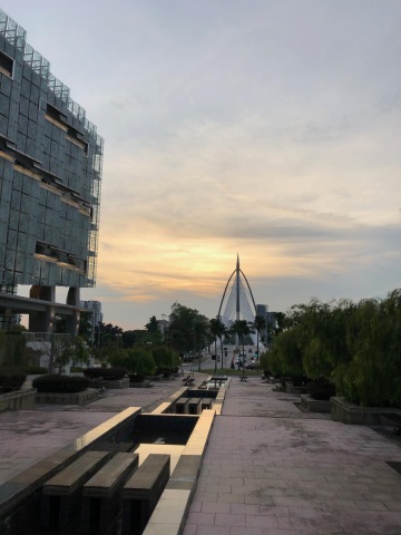 V katarském Doha rychlý přestup. Nestihl jsem prozkoumat obchody s whisky :( Kuala Lumpur. Rozhodl jsem se přespat na půl cesty do centra, v městě Putrajaya. 5* hotel za cenu běžného ubytování u nás byl jasná volba pro načerpání sil. Útulný pokoj, vytoužená sprcha a rychle ven, než zapasne slunce.