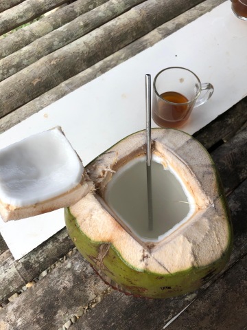 Jsem v Medanu. Na letišti mě čeká delegace kolegů dobrovolníků. Čeká nás 4-5h jízdy. Po cestě kupujeme SIM karty (8GB dat za 200 Kč) a o kousek dál přemlouvám bankomat. Mám 3 cestovatelské karty (ČSOB, Revolut a Curve) pro výběr ve světě. Ani jedna nefunguje. Zachraňuje mě Monča, která má speciálně povoleno u AirBank výběry na Sumatře. Chytré. V půli trasy ještě kupujeme doporučený místní suvenýr, ručně vyráběné mačety. Za 60.000 rupii (95 Kč). Po desítkách kilometrů plantáží palmy olejné pauzujeme na poslední zastávku, stánek s kokosy u krásného údolí. Hrdě odmítám plastové a využívám své nerezové brčko.