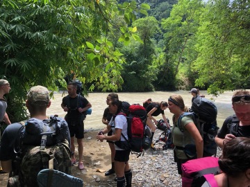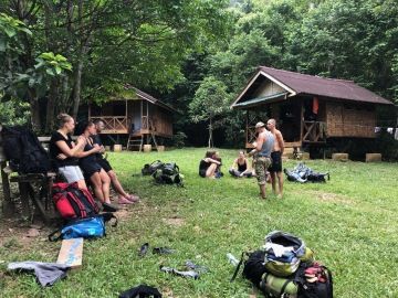 Jsme u prvního stanoviště, Tábor “Dvojka”. Polovina výpravy zde zůstává a za týden proběhne výměna. Naše polovina jde dál. Po výstupu na kopec se ocitáme v divočejším táboře “Jednička”. Pro vodu, koupel i potřebu se schází k řece. Testuji, zda vynesu 2 barely s vodou. Dal jsem to, ale srdce potřebuje na chvíli odstavit. Večeříme tofu na tisíc způsobů a brambor. Výborné.
