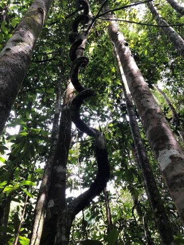 Po obědě se v malé skupince vydáváme na menší okruh kolem opuštěné chaty, kde dříve pobýval kaučukář. Tady se poprvé setkávám s Dále kaučukovými plantážemi až k řece, která teče i kolem Tygřího domu. K večeři máme výborný zeleninový guláš a čerstvě upečený chleba. Bašta! Sundávám prádlo z věšáku a najednou cítím bolest. Pocit píchnutí od sršně kombinovaný s pálením rozžhavených uhlíků. Svítím čelovkou pod sebe. Stojím v roji ohnivých mravenců. Štěstí, že si kousnul jen jeden, jinak bych si poplakal.