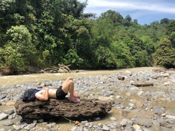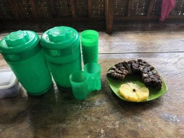 Vstávám před půl 8, loučíme se se dvěmi dobrovolníky. Pár, vyráží dále na Jávu za známými. Ranní koupačka, vynesení sudů s vodou a snídaně. Jdeme na dřevo. Taháme z lesa perfektně nařezané hranoly. Je neuvěřitelné, že to místní zvládají v sandálech a pouze motorovou pilou. Děláme řetěz a tvoříme hromadu u chatek. Koupačka a zasloužené jídlo.