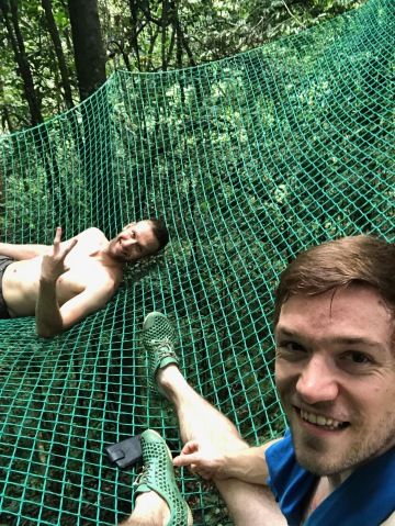 Hezkou procházku zakončujeme návštěvou v kempu “Dvojce” a koupačkou. V dáli se opět ozvala bouřka, loučíme se a utíkáme zpět do našeho tábora. Čeká nás úžasné překvapení. Bábovka! Zahajujeme zasloužený odpočinek. Probouzím se tak akorát k večeři, dýňovo-bramborová kaši s čočkou a smaženým tempehem. Být vegan není vůbec špatné. Zítra nás čeká přesun a výměna táborů s druhou partou.