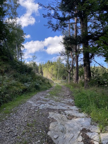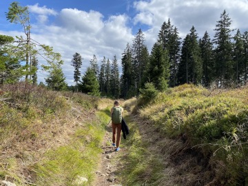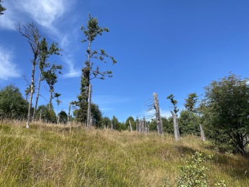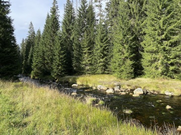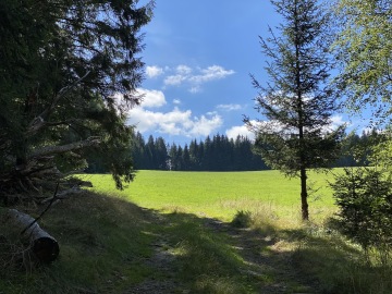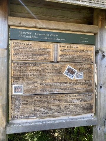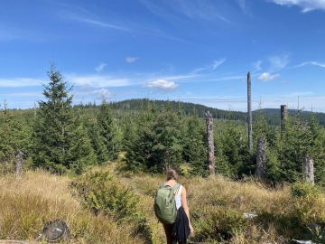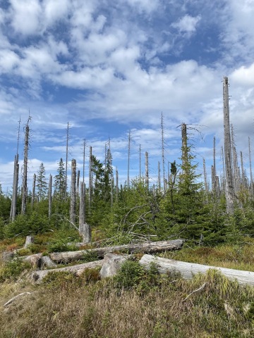Pokračujeme po červené "Stezce Českem" směr Modrava. Pohledem na ex-kůrovcovou mýtinu vzpomínám na větu, kterou mi kdysi řekla místní rodačka: "Kůrovec není špatný pro lidi a pro přírodu, ale je špatný pro bussiness". Důkazem budiž mladé stromy, kde před pár lety byl jen polom, zaplnily. Další myšlenku a to "přemnoženost zvěře", kterou se ohání další skupina vydělávající na přírodě, raději zavrhám.