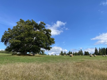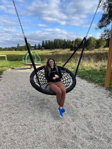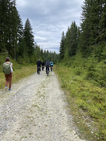 Konečně do přírody, směr Kvilda. Co by to bylo za trasu, kdyby se začátek dne neodehrál v duchu šlapání do kopce. Cestu nám ale zpříjemňují krásné louky a lesy. Za chladného slunného rána si dáváme pauzičku na polévku v Rezidenci Vogelsang, která byla postavena na základech bývalé sklářské vesničky. O pár minut a pár kroků dále se ozývá křik. Janča na cestě šlápla těsně vedle sršně a peláší jak postřelená srnka. Vylekal se tak pán i pes z přilehlého stavění a udiveně koukají, co se to děje.