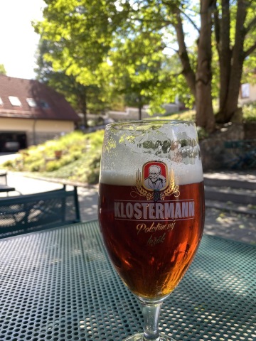 Zahodili jsme bagáž na pokoj a hladoví sestoupili o dvě patra níže na večeři. Od jídla jsme očekávali trochu více, ale zato jsme objevili nového pivního oblíbence, polotmavý ležák Klostermann.
