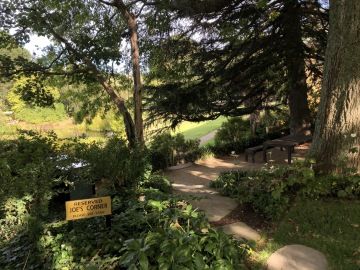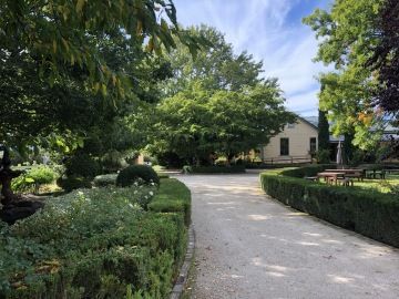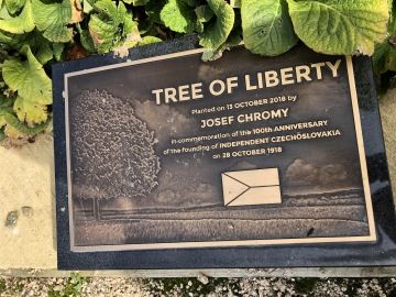 Joe nám ukazuje okolí restaurace se zahradami. Zastavujeme u místa "Joe's corner", kde má Joe svůj relaxační koutek - lavičku s krásným výhledem přes jezero na vinice. U vchodu do restaurace se nachází malý záhonek. Když vykvete, barvy květů vytvoří českou vlajku. Uprostřed je zasazena krásná lípa a na okraji umístěna plaketa s nápisem: “Strom svobody. Věnováno ke stému výročí nezávislosti Československa.”